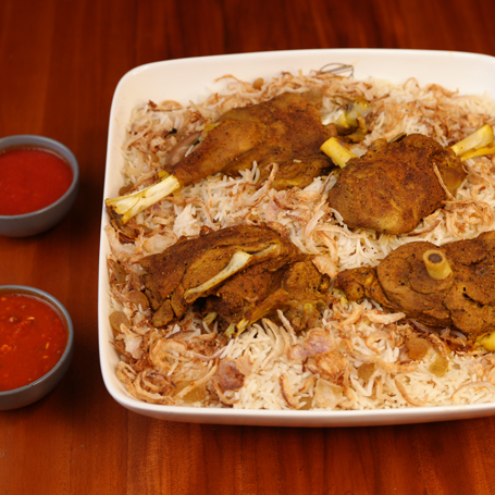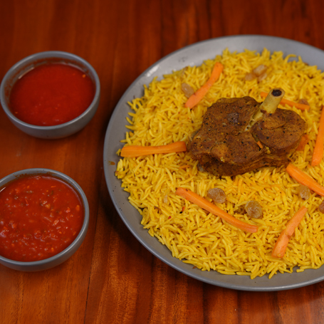 Indulge in the regal Bukhari Rice, a delightful melange of fragrant basmati rice and succulent meat, creating a harmony of taste that delights the senses.