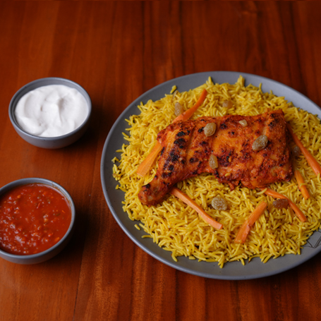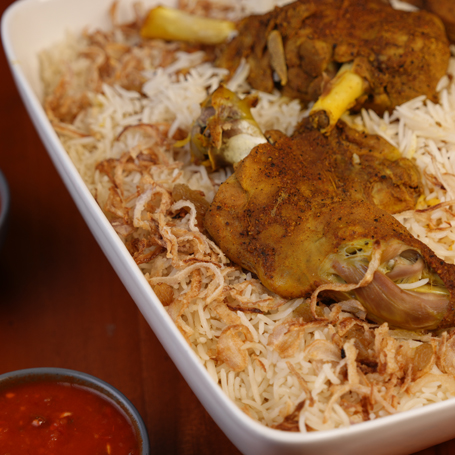 Indulge in the regal Bukhari Rice, a delightful melange of fragrant basmati rice and succulent meat, creating a harmony of taste that delights the senses.